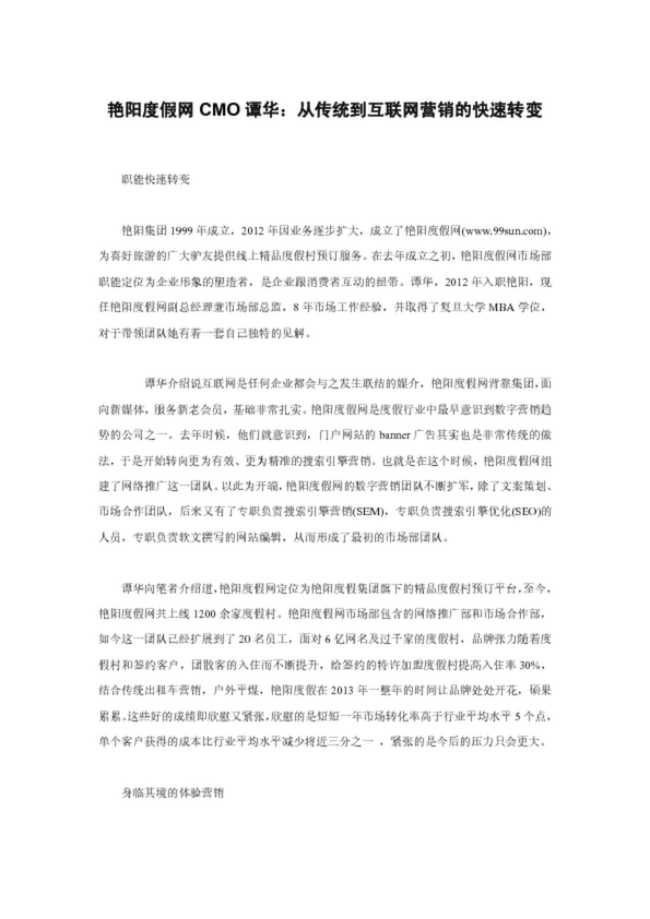 艷陽度假網CMO譚華:從傳統到互聯網營銷的快速轉變(15.00KB)
