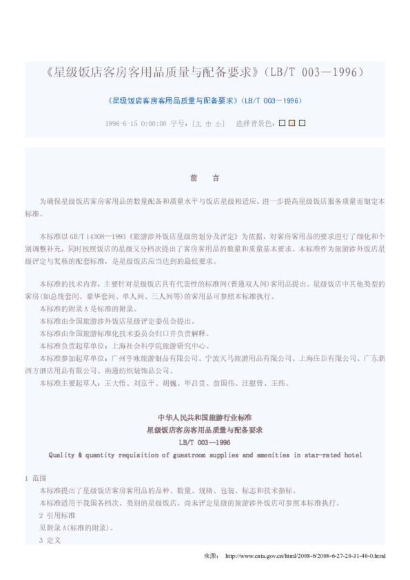 星級飯店客房客用品質量與配備要求(0.12MB)