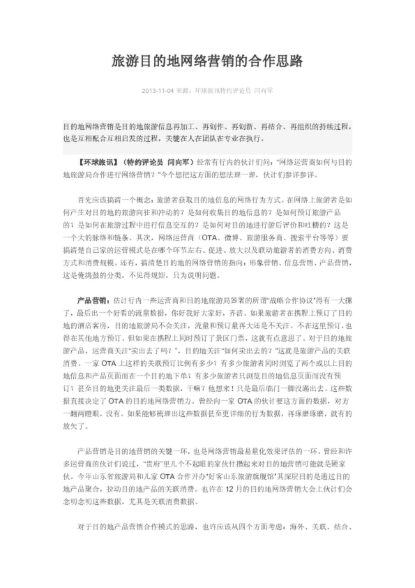 旅游目的地網(wǎng)絡(luò)營(yíng)銷(xiāo)的合作思路