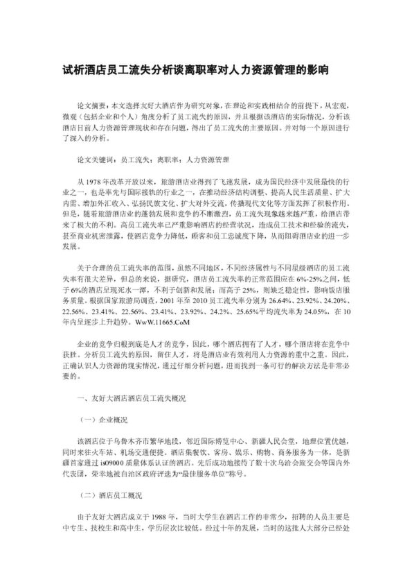 試析酒店員工流失分析談離職率對人力資源管理的影響(25.00KB)