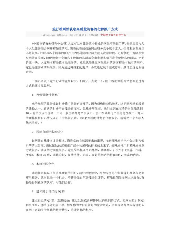 旅行社網站獲取高質量訪客的七種推廣方式(26.00KB)