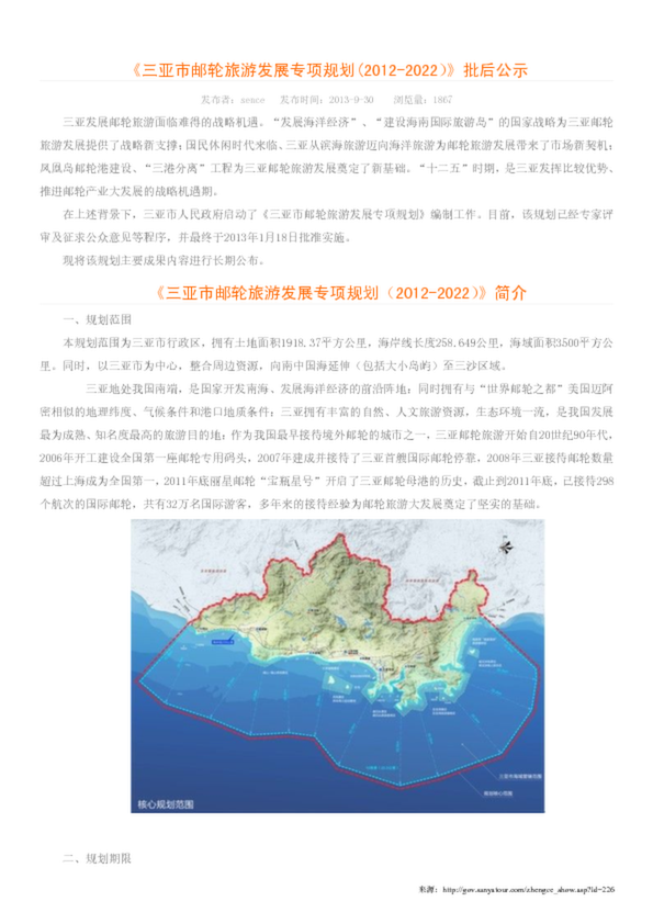 《三亞市郵輪旅游發展專項規劃(2012-2022)》批后公示