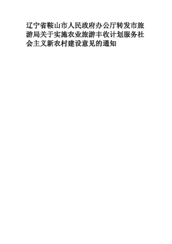 遼寧省鞍山市人民政府辦公廳轉(zhuǎn)發(fā)市旅游局關(guān)于實(shí)施農(nóng)業(yè)旅游豐收計劃服務(wù)社會主義新農(nóng)村建設(shè)意見的通知