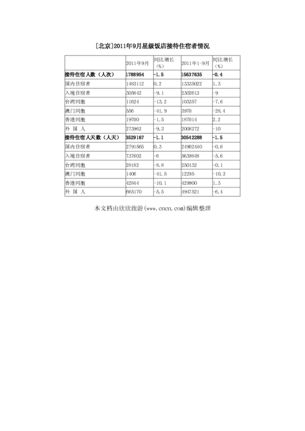 [北京]2011年9月星級飯店接待住宿者情況