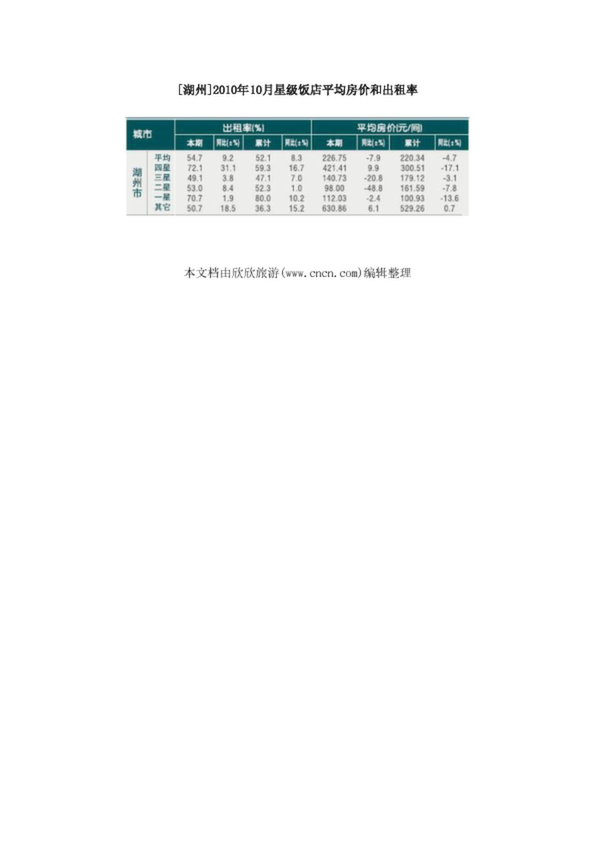 [湖州]2010年10月星級飯店平均房價和出租率