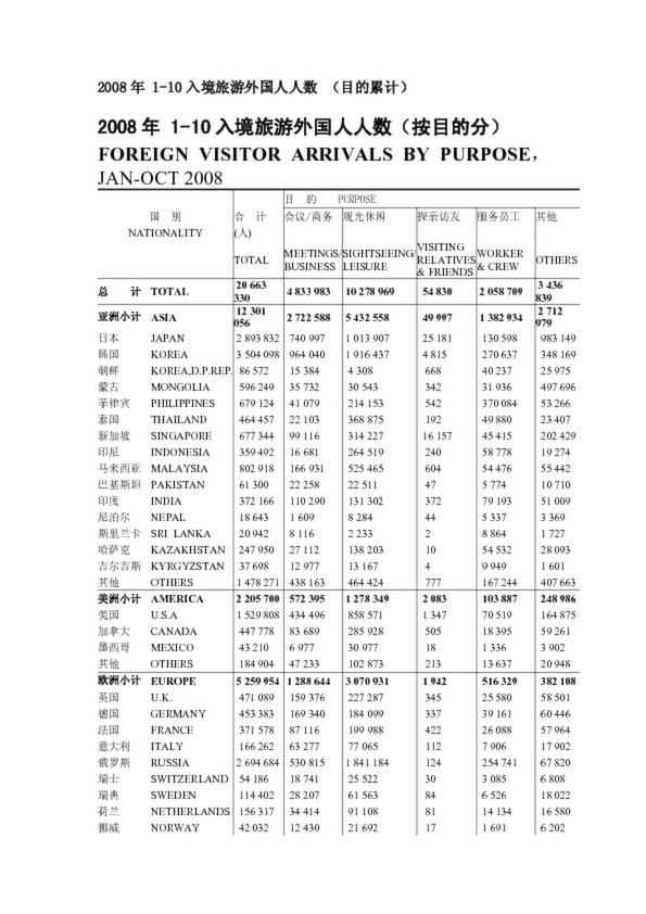 2008年 1-10入境旅游外國(guó)人人數(shù) (目的累計(jì))