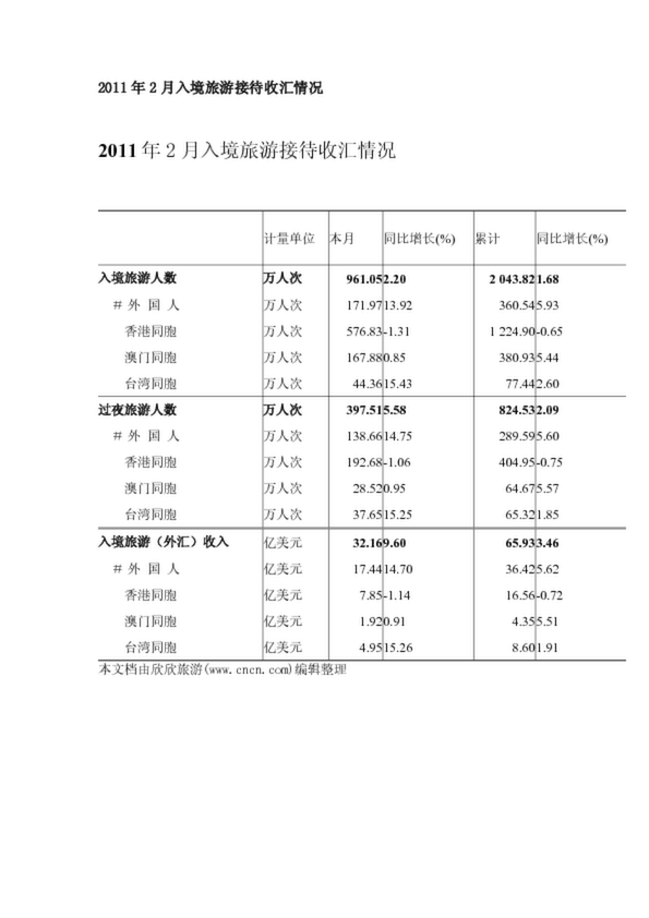 2011年2月入境旅游接待收匯情況(36.98KB)