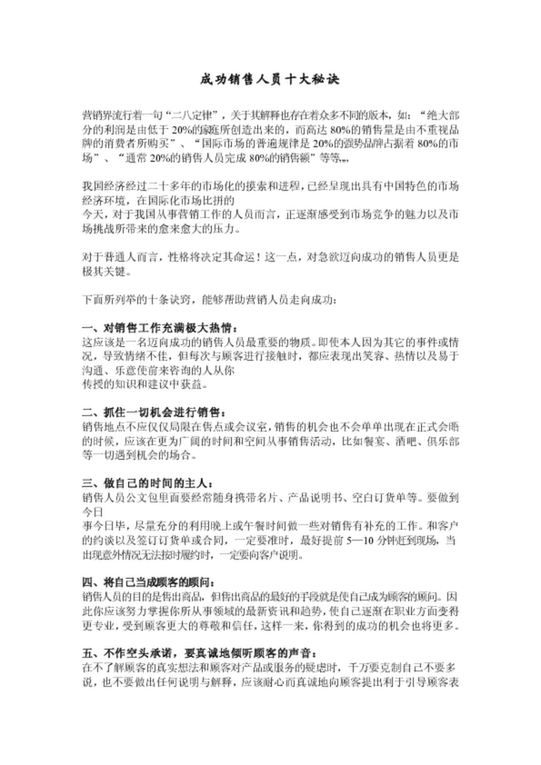成功銷售人員十大秘訣
