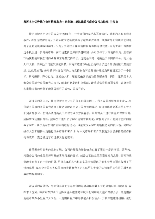 發(fā)揮本土優(yōu)勢(shì)優(yōu)化公司構(gòu)架發(fā)力中原市場(chǎng)—捷達(dá)旅游河南分公司總經(jīng)理 王俊杰