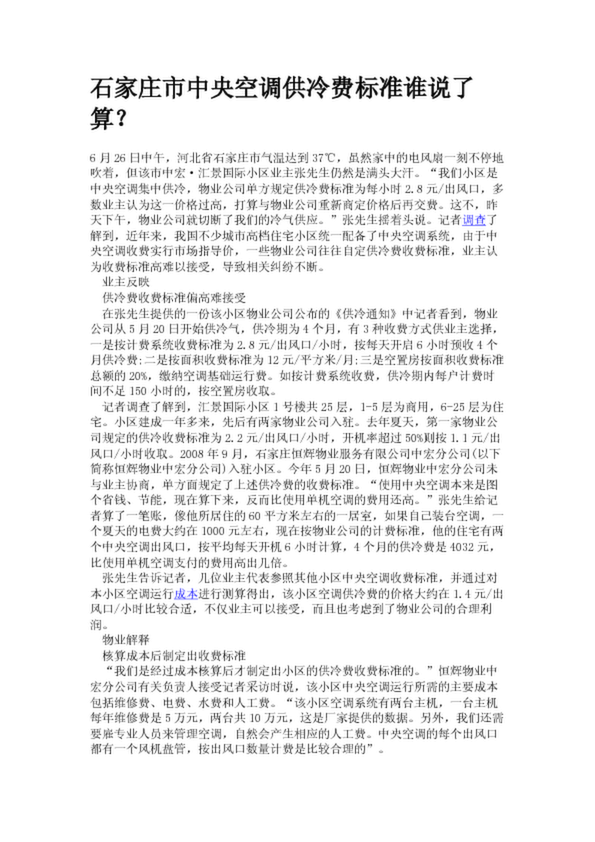 石家莊市中央空調供冷費標準誰說了算?(25.89KB)