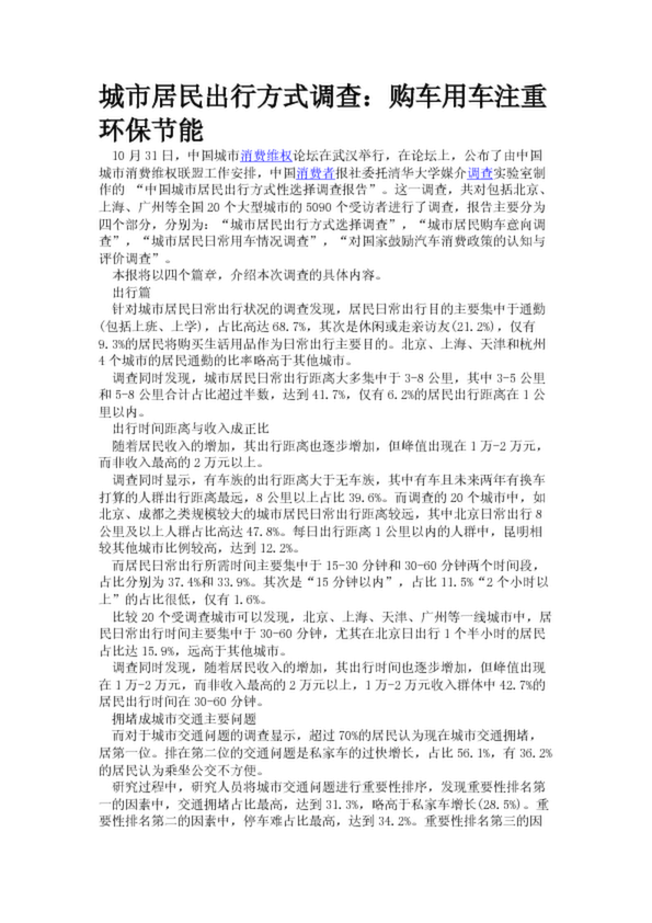 城市居民出行方式調查:購車用車注重環保節能(39.94KB)